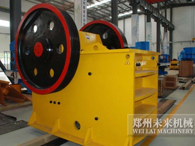 該機(jī)由電動(dòng)機(jī)驅(qū)動(dòng)皮帶和皮帶輪,通過(guò)偏心軸使動(dòng)顎上下運(yùn)動(dòng),當(dāng)動(dòng)顎下行時(shí),定顎與動(dòng)顎間夾角變小,物料被壓碎達(dá)到破碎目的;當(dāng)動(dòng)顎上升時(shí)定顎和動(dòng)顎間夾角變大,動(dòng)顎板在拉桿、彈簧的作用下離開(kāi)定顎板,此時(shí)已破碎物料從破碎腔下口排出。